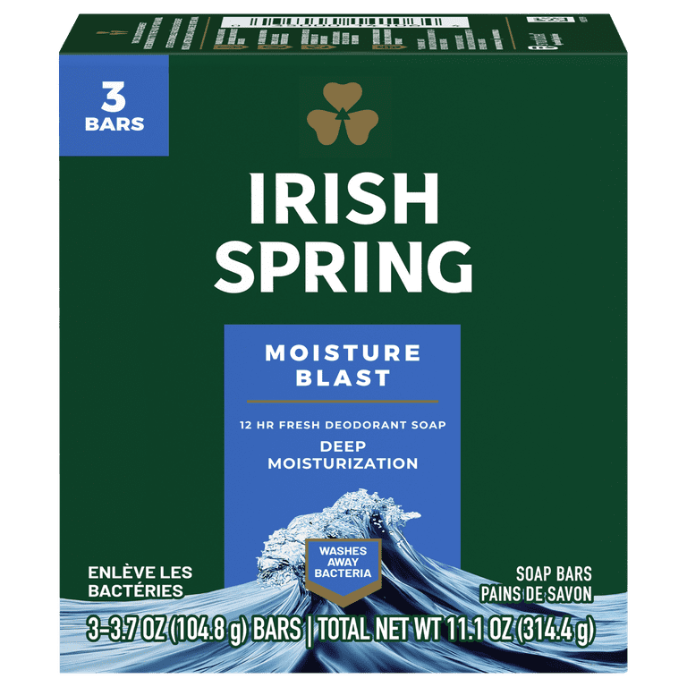 Irish Spring Moisture Blast | Jabón de Hidratación Profunda | Pack 3 Barras